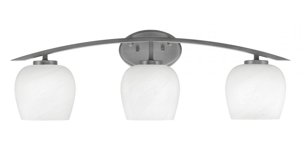 Toltec Lighting 3723-GP-4811 Kurve 3 Light Bath Bar, Graphite Finish, 6 White Marble Glass