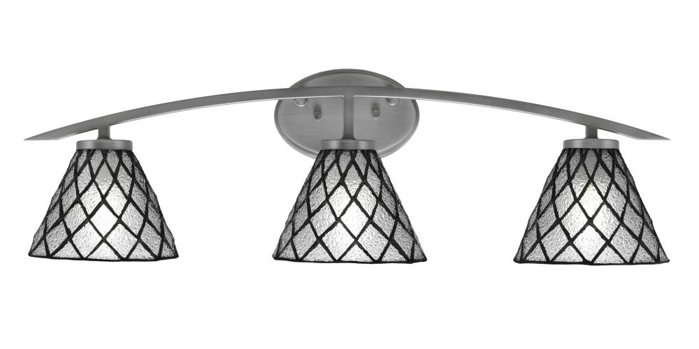 Toltec Lighting 3723-GP-9185 Kurve 3 Light Bath Bar, Graphite Finish, 7 Diamond Ice Art Glass