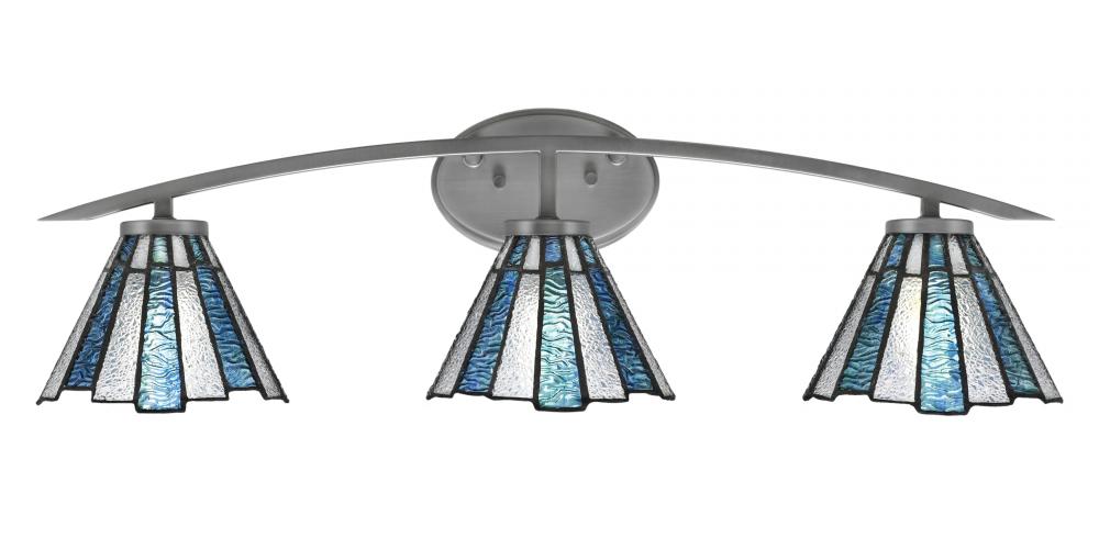 Toltec Lighting 3723-GP-9325 Kurve 3 Light Bath Bar, Graphite Finish, 7 Sea Ice Art Glass