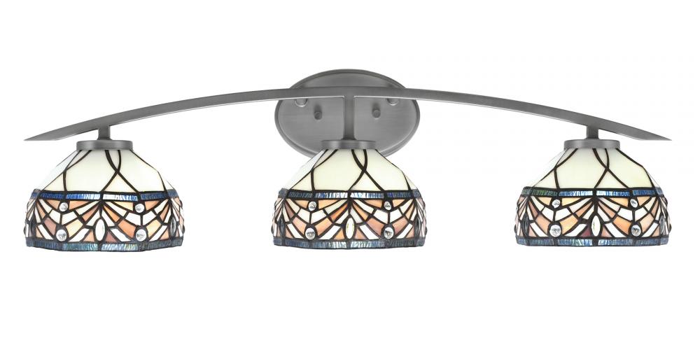 Toltec Lighting 3723-GP-9485 Kurve 3 Light Bath Bar, Graphite Finish, 7 Royal Merlot Art Glass