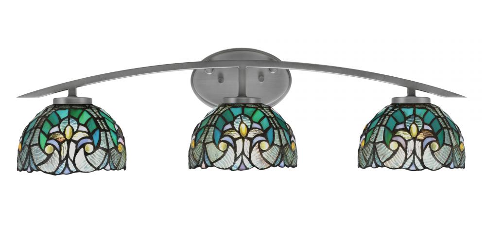 Toltec Lighting 3723-GP-9925 Kurve 3 Light Bath Bar, Graphite Finish, 7 Turquoise Cypress Art Glass