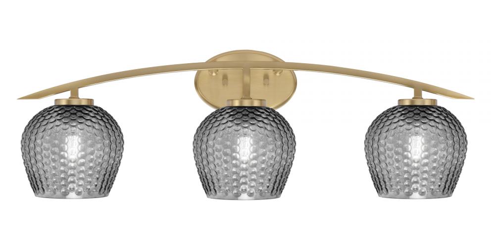 Toltec Lighting 3723-NAB-4602 Kurve 3 Light Bath Bar, New Age Brass Finish, 6 Smoke Textured Glass