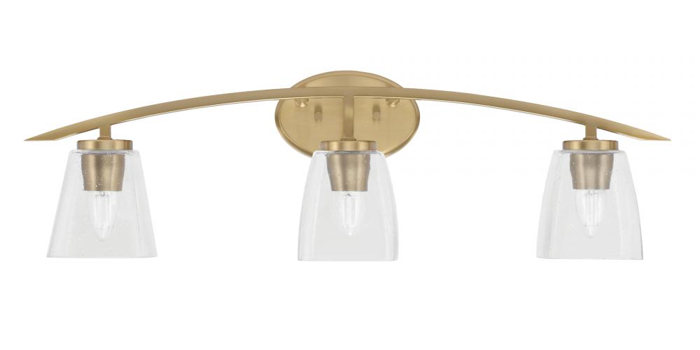 Toltec Lighting 3723-NAB-461 Kurve 3 Light Bath Bar, New Age Brass Finish, 4.5 Square Clear Bubble Glass