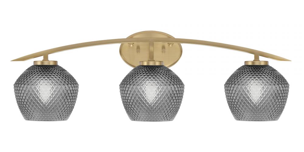 Toltec Lighting 3723-NAB-4622 Kurve 3 Light Bath Bar, New Age Brass Finish, 6 Smoke Textured Glass