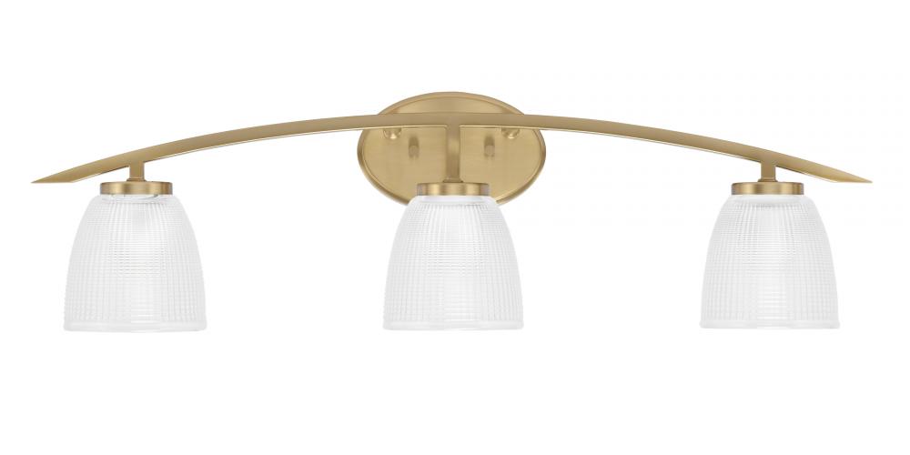 Toltec Lighting 3723-NAB-500 Kurve 3 Light Bath Bar, New Age Brass Finish, 5 Clear Ribbed Glass