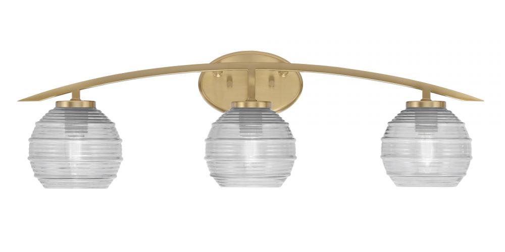 Toltec Lighting 3723-NAB-5110 Kurve 3 Light Bath Bar, New Age Brass Finish, 6 Clear Ribbed Glass