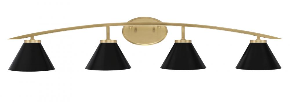 Toltec Lighting 3724-NAB-421-MB Kurve 4 Light Bath Bar, New Age Brass Finish, 7 Matte Black Cone Metal Shades