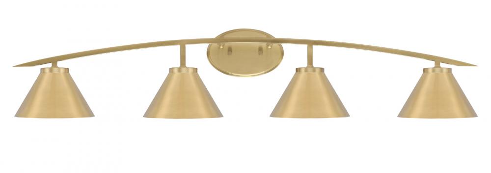 Toltec Lighting 3724-NAB-421-NAB Kurve 4 Light Bath Bar, New Age Brass Finish, 7 New Age Brass Cone Metal Shades
