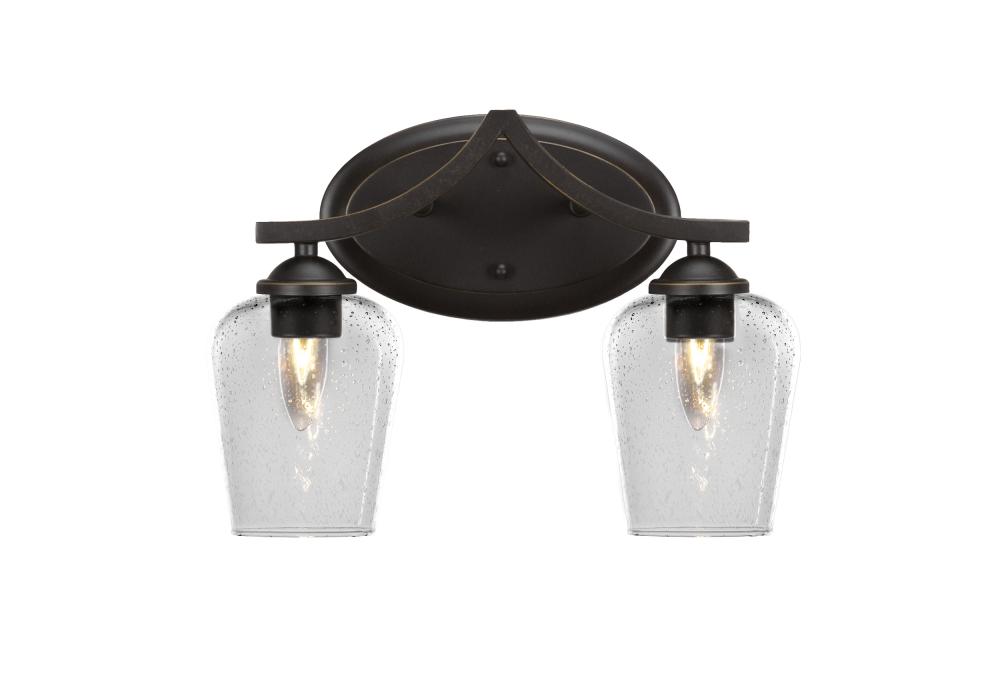 Zilo 2 Light Bath Bar Shown In Dark Granite Finish With 5 Clear Bubble Glass