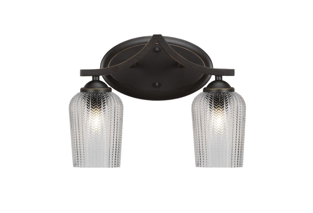 Zilo 2 Light Bath Bar Shown In Dark Granite Finish With 5 Clear Textured Glass