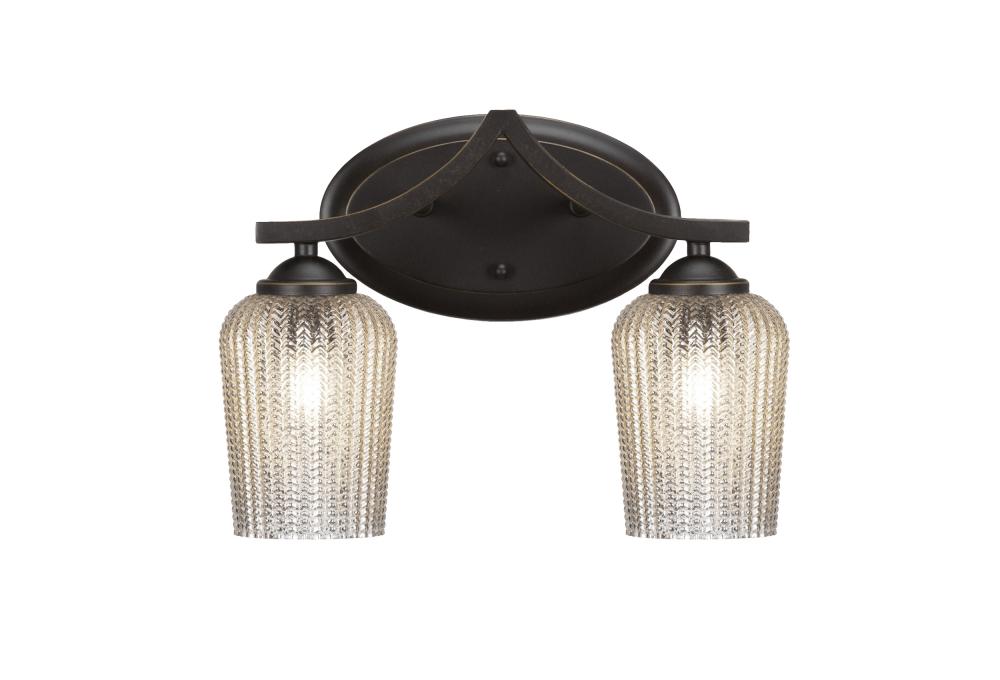 Zilo 2 Light Bath Bar Shown In Dark Granite Finish With 5 Silver Textured Glass