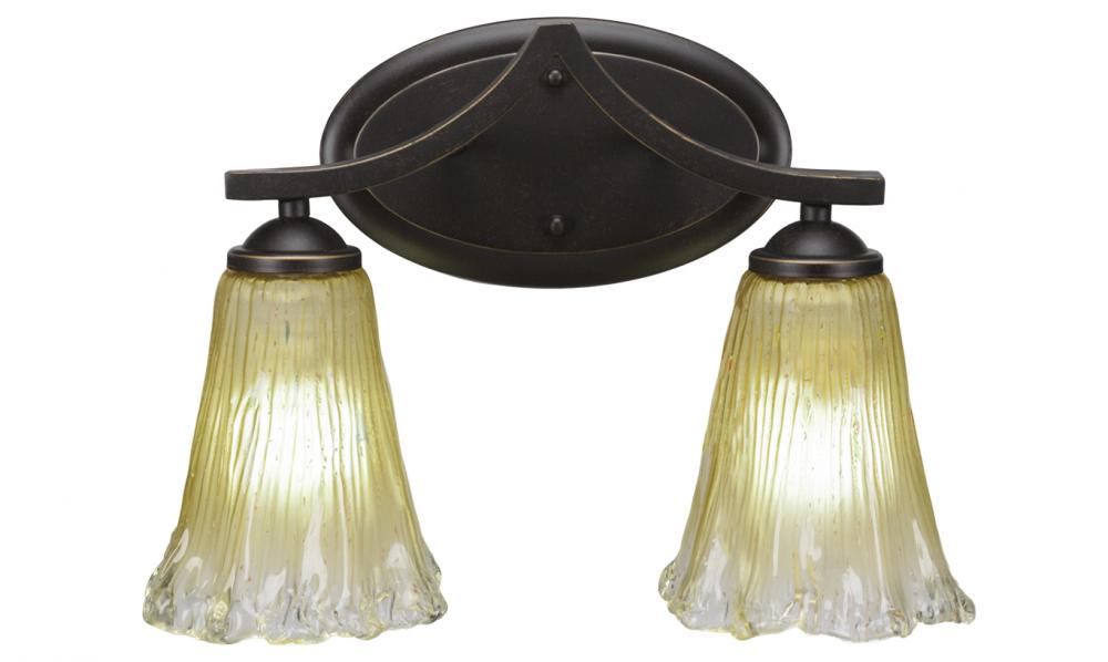 Zilo 2 Light Bath Bar Shown In Dark Granite Finish With 5.5 Fluted Amber Crystal Glass
