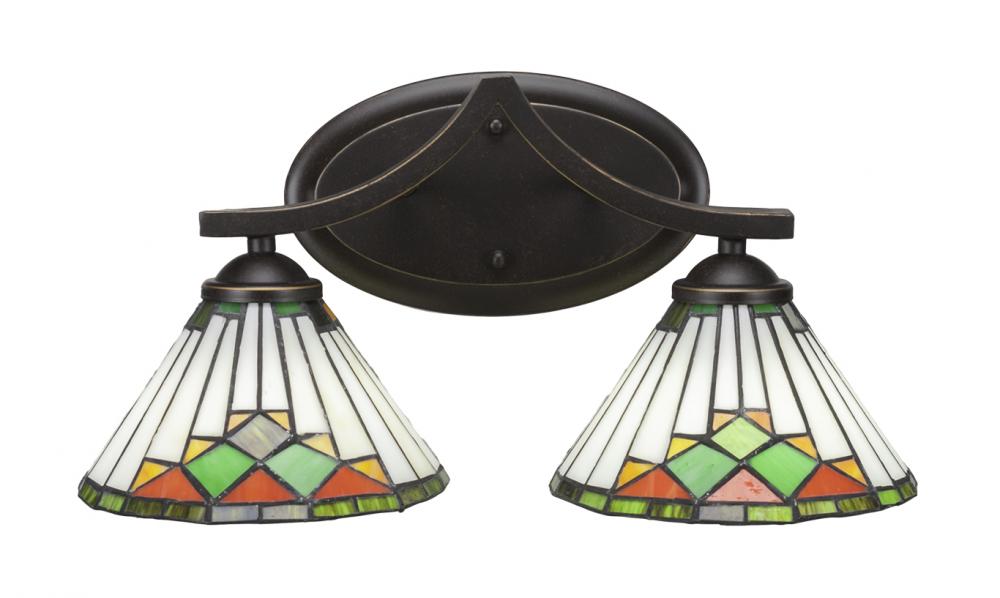 Zilo 2 Light Bath Bar Shown In Dark Granite Finish With 7 Green Sunray Art Glass