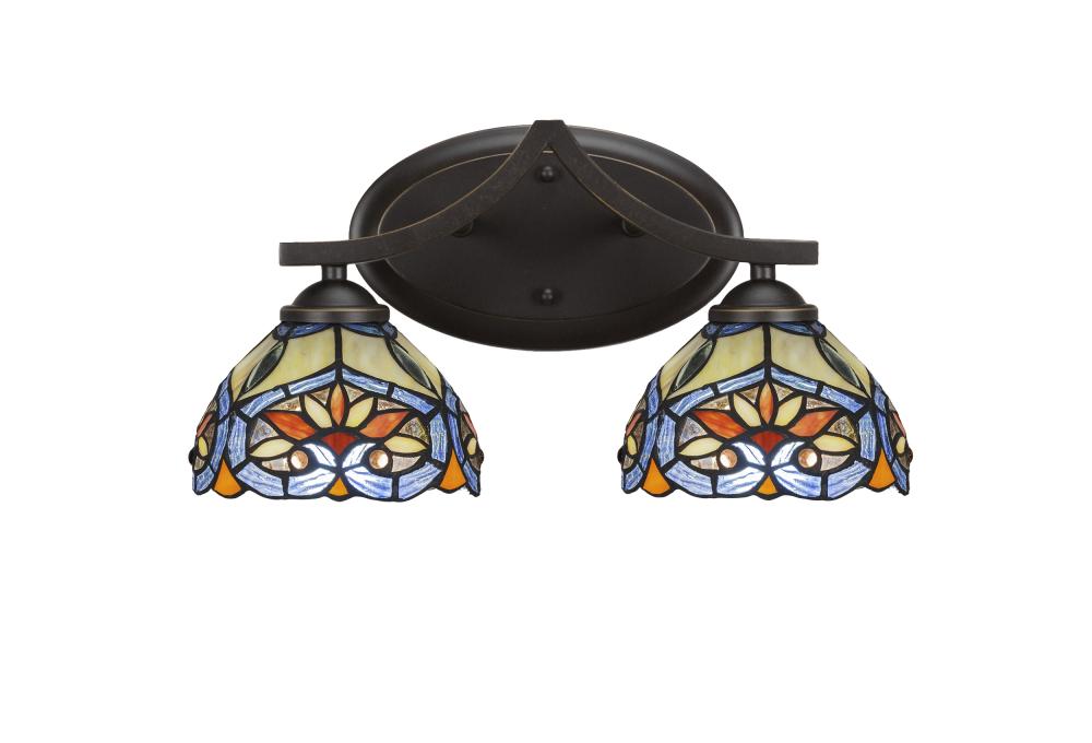 Zilo 2 Light Bath Bar Shown In Dark Granite Finish With 7 Pavo Art Glass