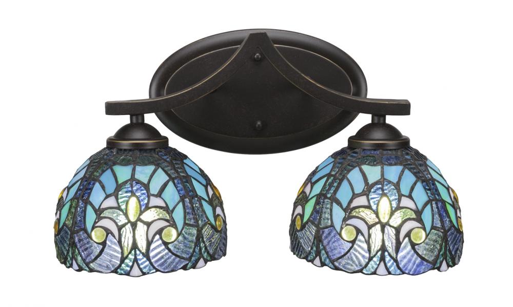 Zilo 2 Light Bath Bar Shown In Dark Granite Finish With 7 Turquoise Cypress Art Glass
