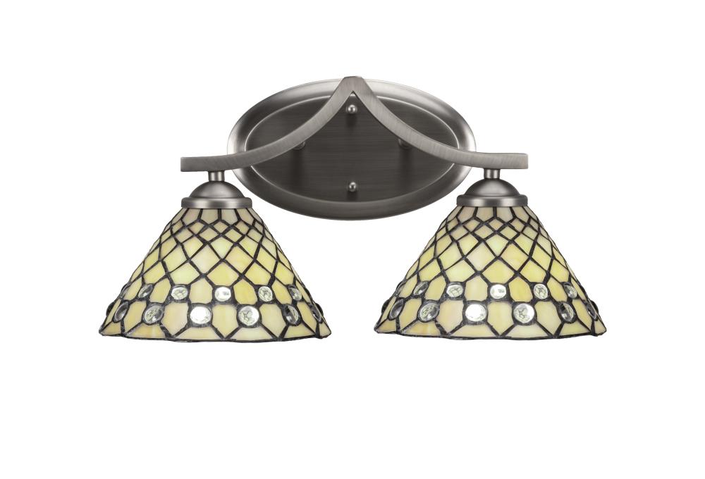 Zilo 2 Light Bath Bar Shown In Graphite Finish With 7 Starlight Art Glass