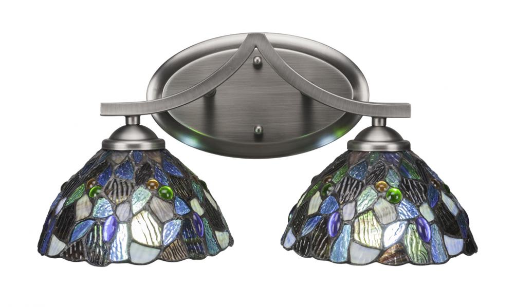 Toltec Lighting 552-GP-9955 Zilo 2 Light Bath Bar Shown In Graphite Finish With 7 Blue Mosaic Art Glass