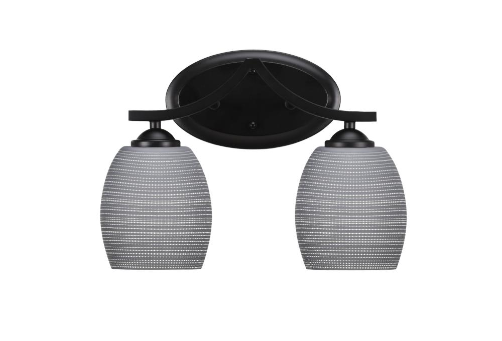 Zilo 2 Light Bath Bar Shown In Matte Black Finish With 5 Gray Matrix Glass