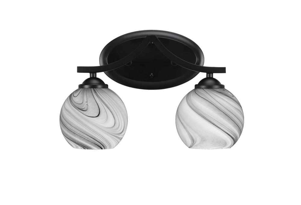 Zilo 2 Light Bath Bar Shown In Matte Black Finish With 5.75 Onyx Swirl Glass
