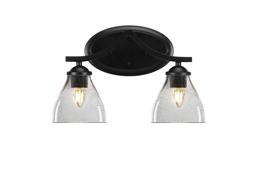 Zilo 2 Light Bath Bar Shown In Matte Black Finish With 6.25 Clear Bubble Glass