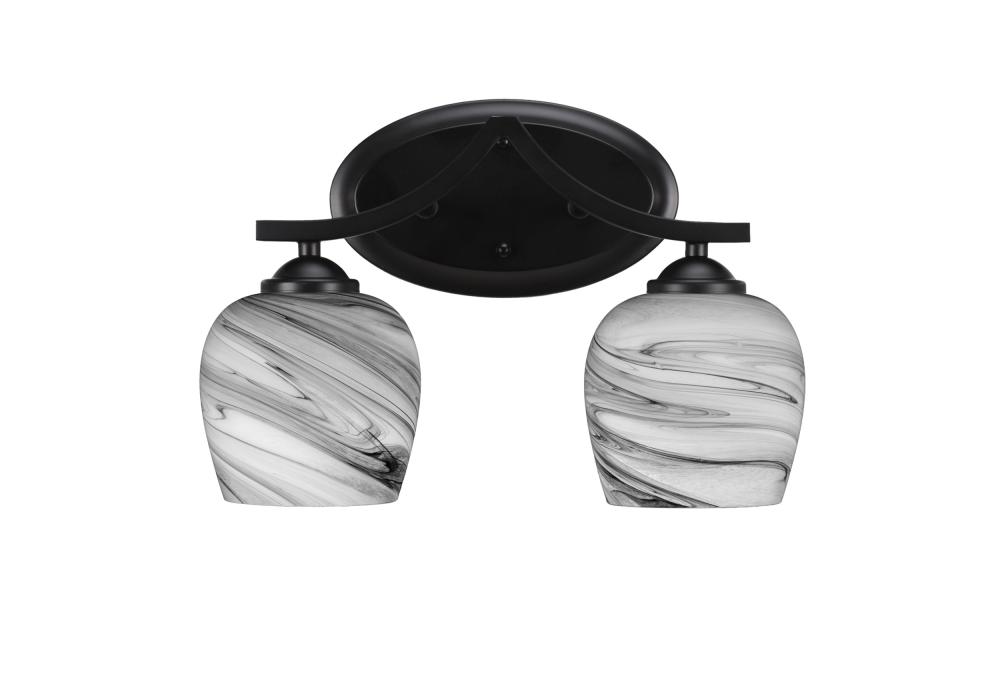 Zilo 2 Light Bath Bar Shown In Matte Black Finish With 6 Onyx Swirl Glass
