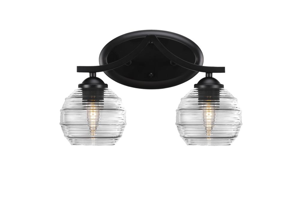Zilo 2 Light Bath Bar Shown In Matte Black Finish With 6 Clear Ribbed Glass