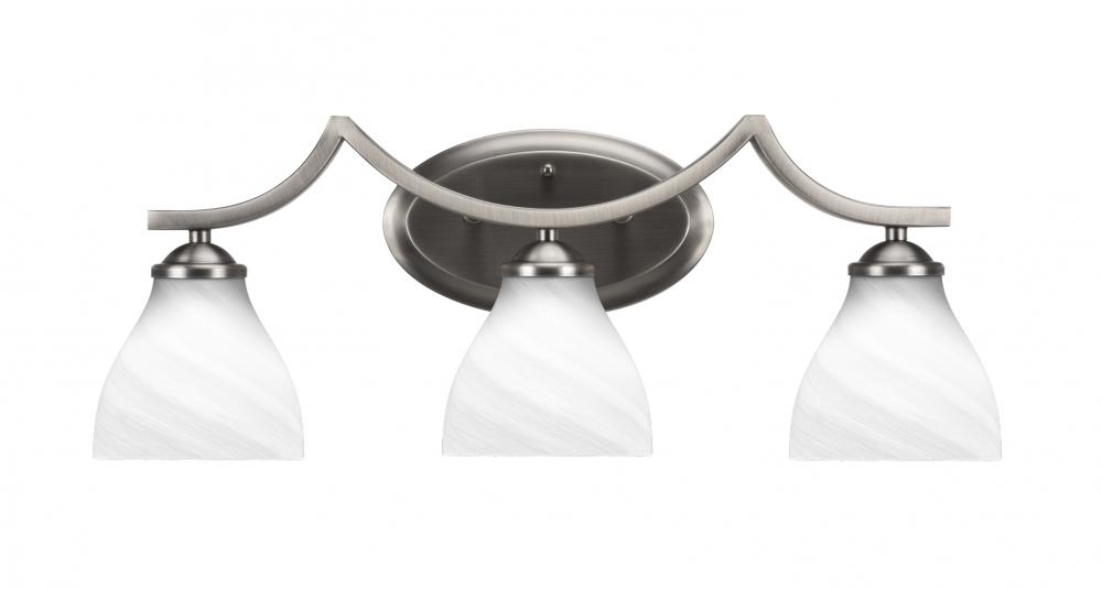 Zilo 3 Light Bath Bar Shown In Graphite Finish With 6.25 White Marble Glass