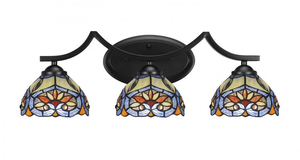 Zilo 3 Light Bath Bar Shown In Matte Black Finish With 7 Pavo Art Glass
