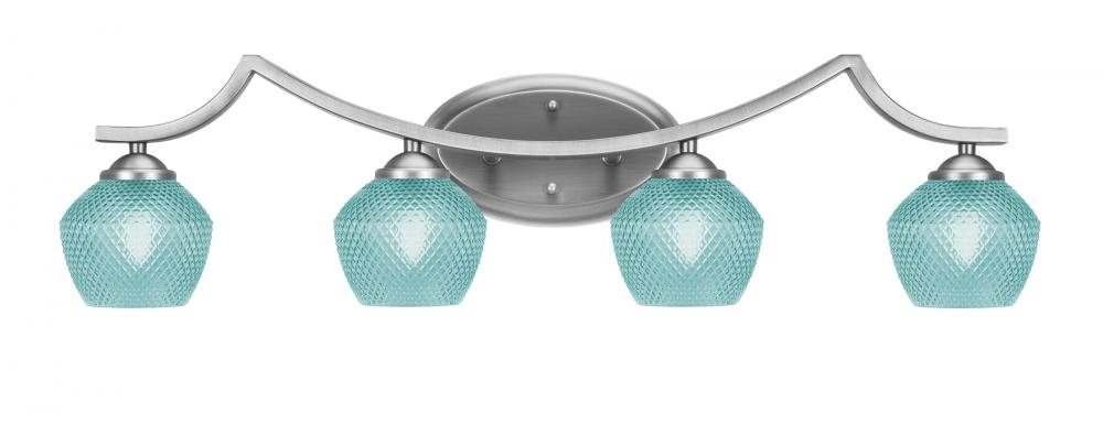 Zilo 4 Light Bath Bar Shown In Graphite Finish With 6 Turquoise Textured Glass