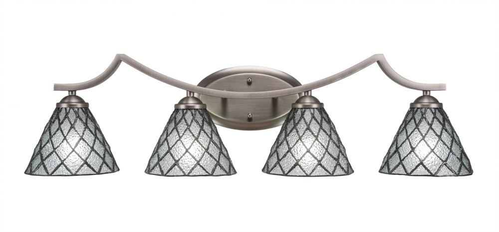 Toltec Lighting 554-GP-9185 Zilo 4 Light Bath Bar Shown In Graphite Finish With 7 Diamond Ice Art Glass