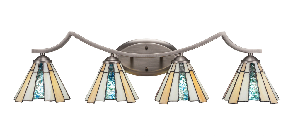 Toltec Lighting 554-GP-9325 Zilo 4 Light Bath Bar Shown In Graphite Finish With 7 Sea Ice Art Glass