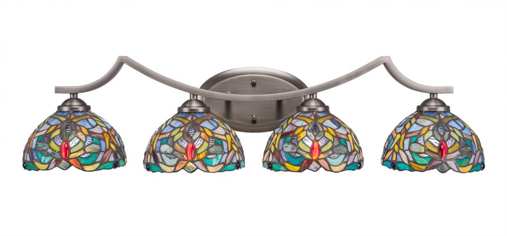 Toltec Lighting 554-GP-9905 Zilo 4 Light Bath Bar Shown In Graphite Finish With 7 Kaleidoscope Art Glass