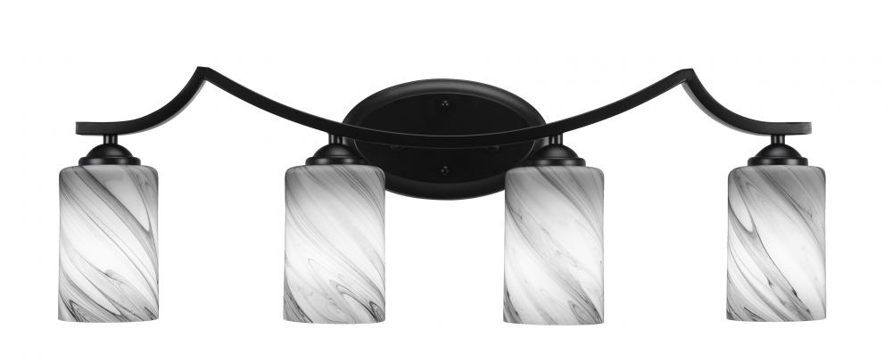 Zilo 4 Light Bath Bar Shown In Matte Black Finish With 4 Onyx Swirl Glass