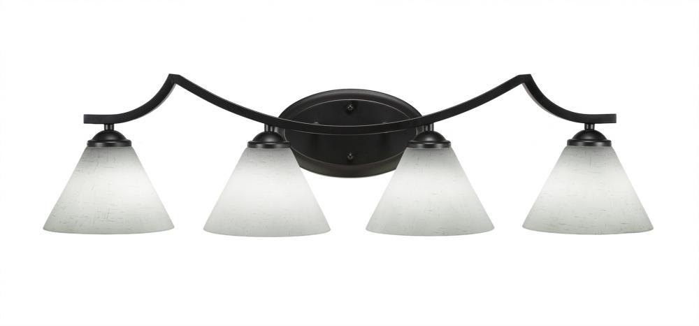 Toltec Lighting 554-MB-312 Zilo 4 Light Bath Bar Shown In Matte Black Finish With 7 White Muslin Glass