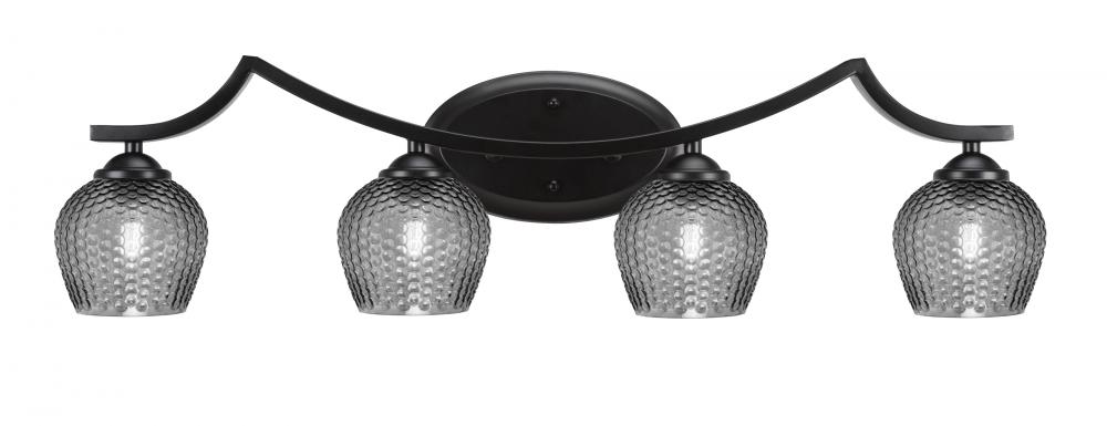 Zilo 4 Light Bath Bar Shown In Matte Black Finish With 6 Smoke Textured Glass