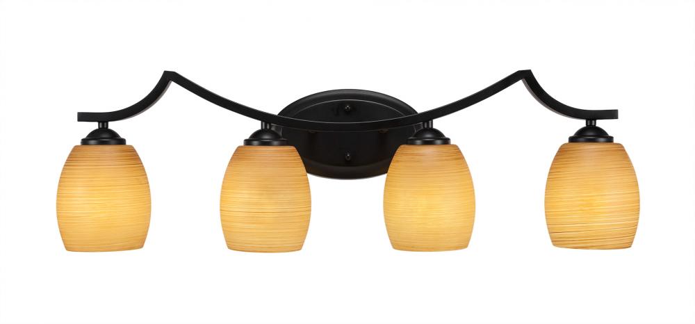 Toltec Lighting 554-MB-625 Zilo 4 Light Bath Bar Shown In Matte Black Finish With 5 Cayenne Linen Glass