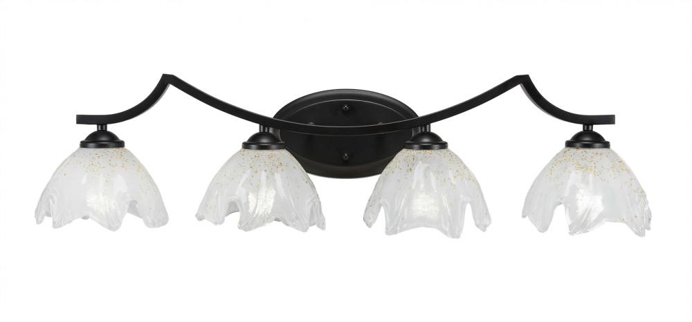 Toltec Lighting 554-MB-755 Zilo 4 Light Bath Bar Shown In Matte Black Finish With 7 Gold Ice Glass