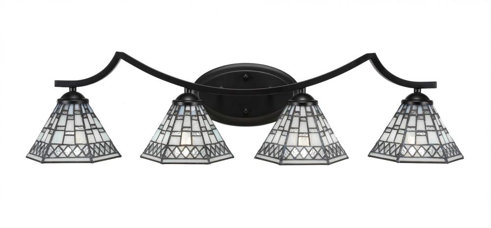 Toltec Lighting 554-MB-9105 Zilo 4 Light Bath Bar Shown In Matte Black Finish With 7 Pewter Art Glass