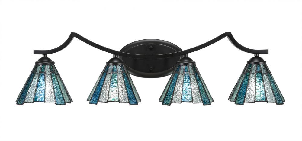 Toltec Lighting 554-MB-9325 Zilo 4 Light Bath Bar Shown In Matte Black Finish With 7 Sea Ice Art Glass