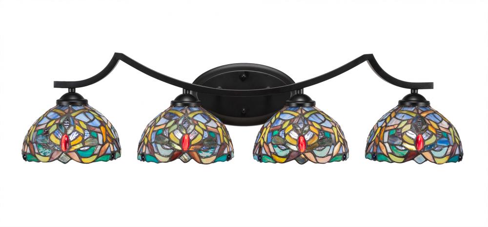 Toltec Lighting 554-MB-9905 Zilo 4 Light Bath Bar Shown In Matte Black Finish With 7 Kaleidoscope Art Glass