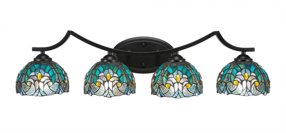 Toltec Lighting 554-MB-9925 Zilo 4 Light Bath Bar Shown In Matte Black Finish With 7 Turquoise Cypress Art Glass