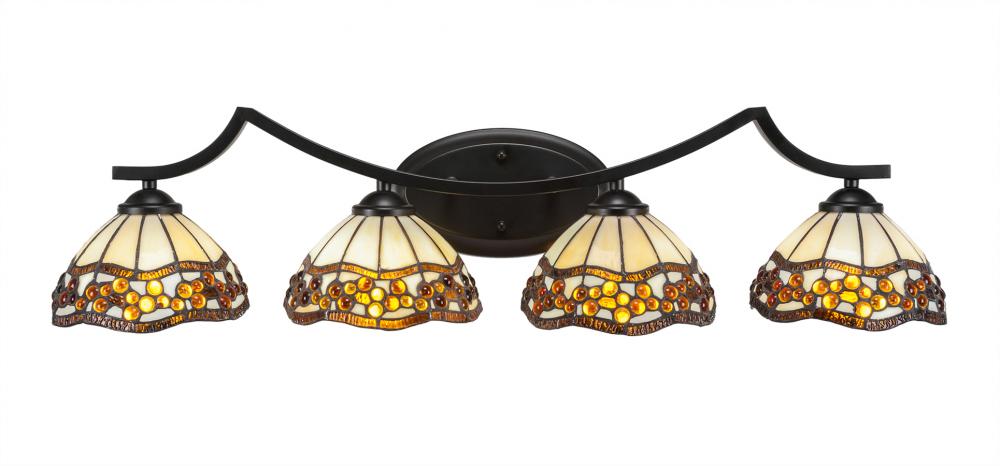 Toltec Lighting 554-MB-9975 Zilo 4 Light Bath Bar Shown In Matte Black Finish With 7 Roman Jewel Art Glass