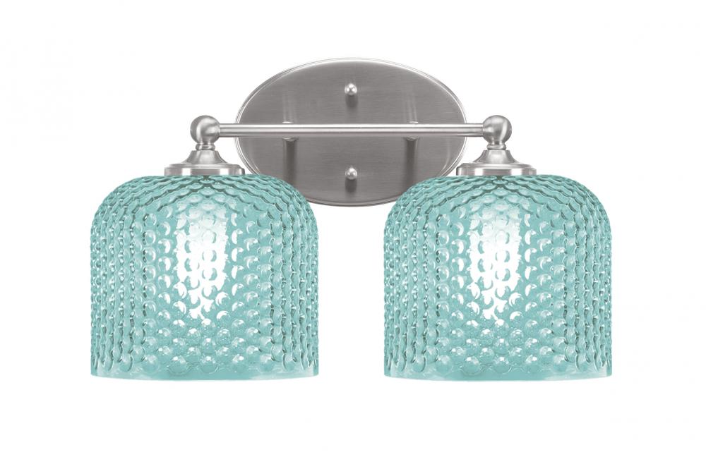 Capri 2 Light Bath Bar Shown In Brushed Nickel Finish With 6 Turquoise Textured Glass