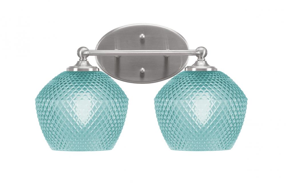 Capri 2 Light Bath Bar Shown In Brushed Nickel Finish With 6 Turquoise Textured Glass