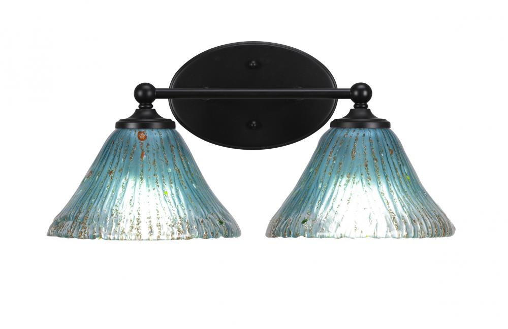 Capri 2 Light Bath Bar Shown In Matte Black Finish With 7 Teal Crystal Glass
