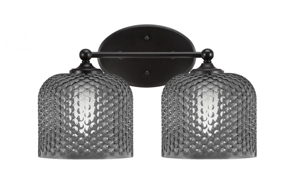 Capri 2 Light Bath Bar Shown In Matte Black Finish With 6 Smoke Textured Glass