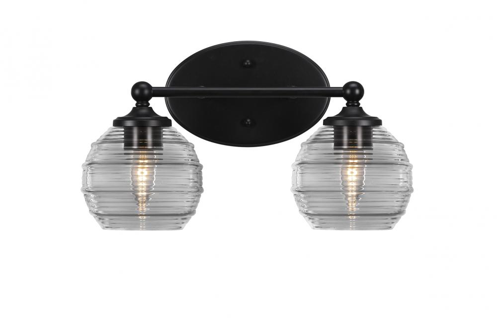 Capri 2 Light Bath Bar Shown In Matte Black Finish With 6 Clear Ribbed Glass