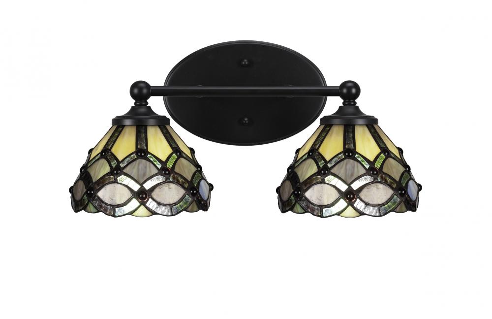 Capri 2 Light Bath Bar Shown In Matte Black Finish With 7 Grand Merlot Art Glass