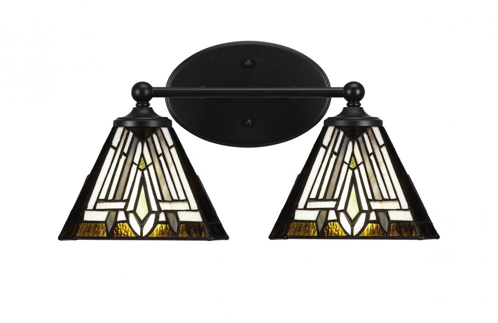 Capri 2 Light Bath Bar Shown In Matte Black Finish With 7 Square Tahoe Art Glass