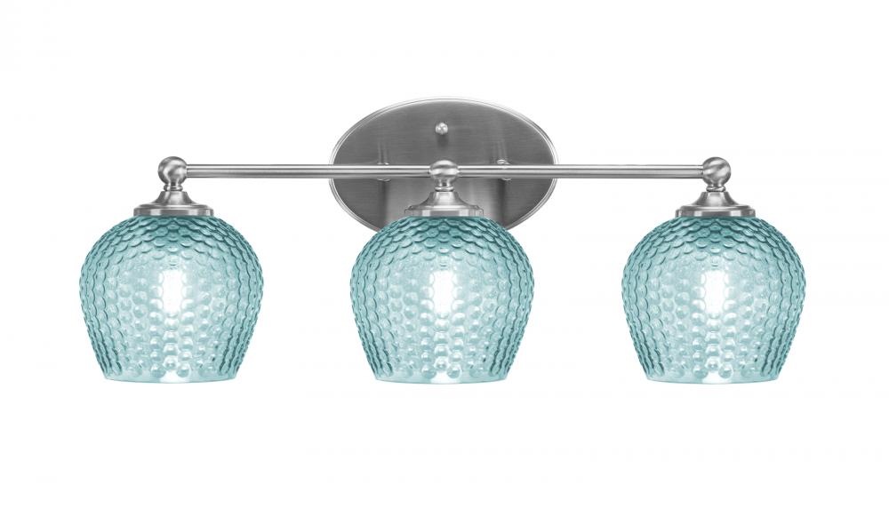Capri 3 Light Bath Bar Shown In Brushed Nickel Finish With 6 Turquoise Textured Glass